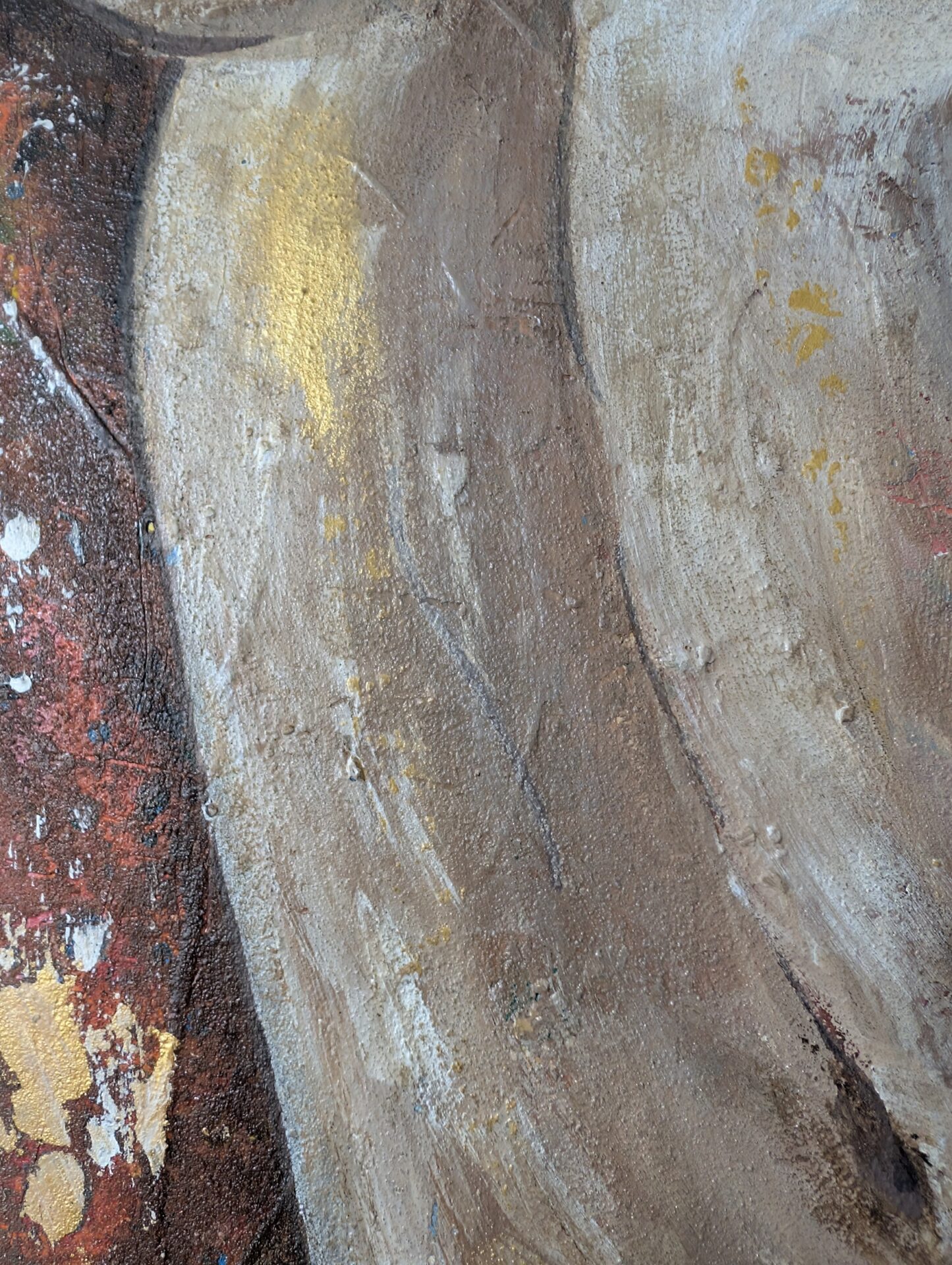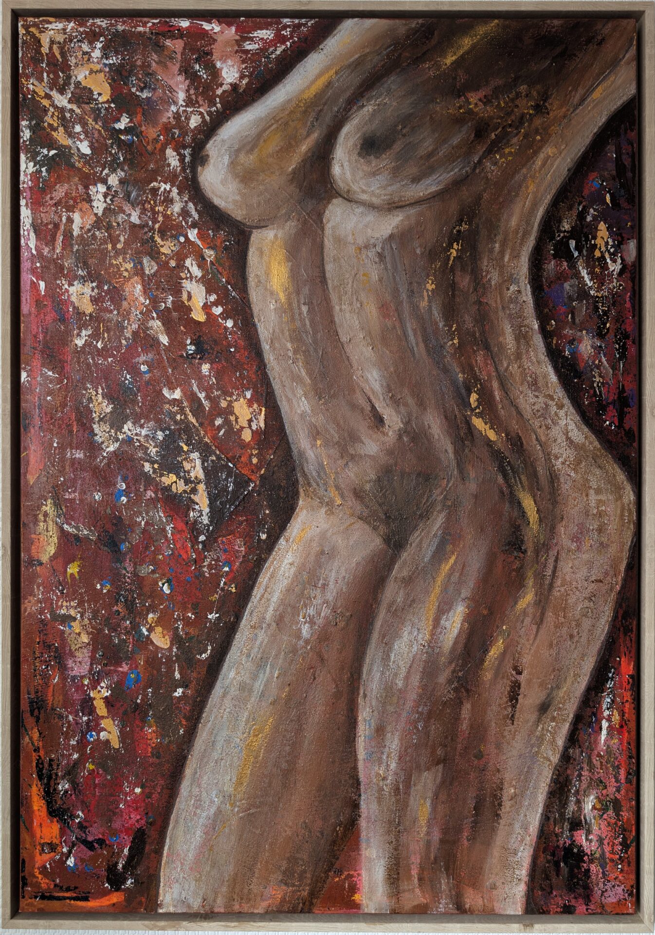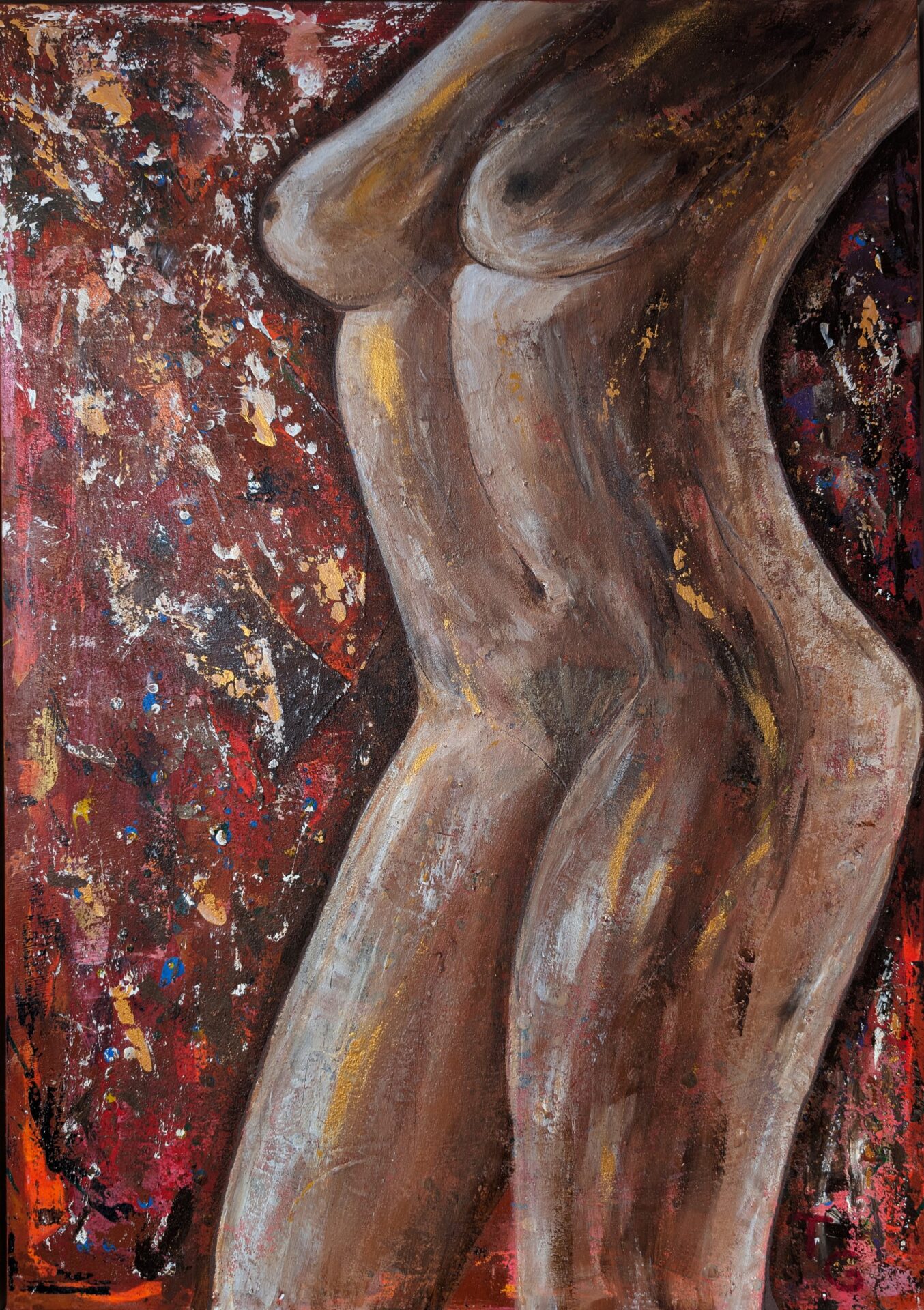 In warmen Erdtönen entfaltet sich eine sinnlich-abstrakte Frauenfigur mit emotionaler Tiefe.