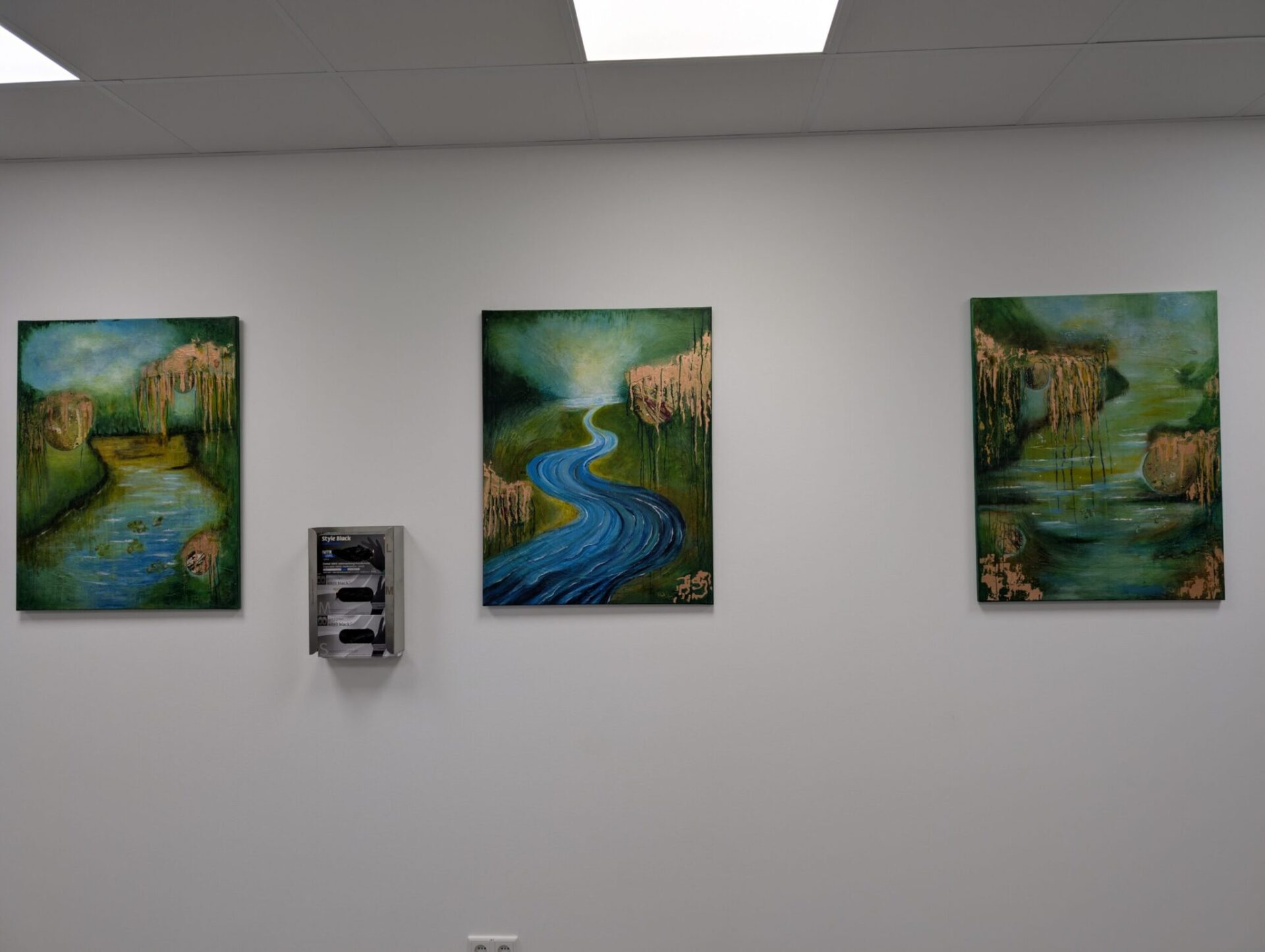 Mit satten Grün- und Blautönen, strukturierten Flächen und goldenen Akzenten möchte ich die Balance, die Zyklen und die stille Kraft der Natur sichtbar machen.